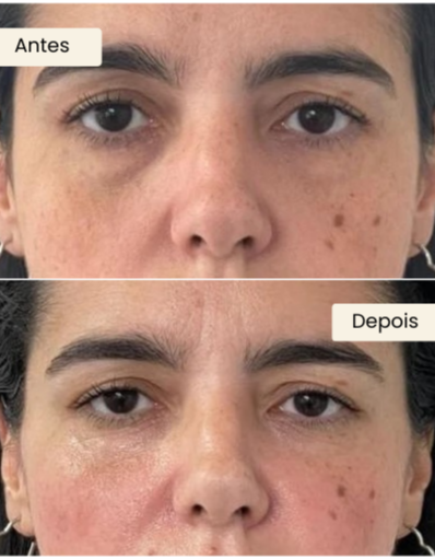 a pele e reduzindo a sombra que causa o aspecto de olheira profunda.